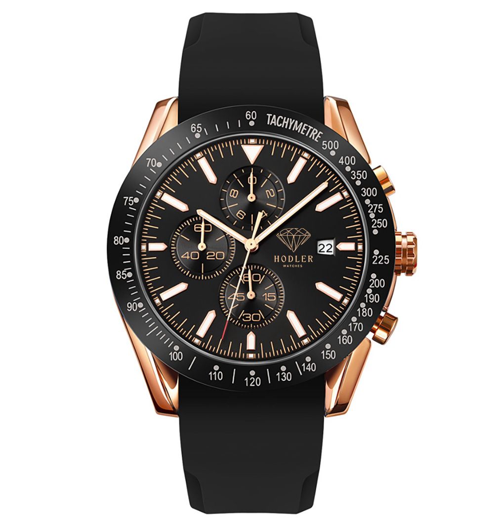De Hodler Luzern is een krachtig en stijlvol horloge dat moeiteloos de brug slaat tussen sportieve flair en moderne elegantie. De intense wijzerplaat, omhuld door een roségouden roestvrijstalen kast en gecombineerd met een bijpassende siliconen band, straalt frisheid en karakter uit.